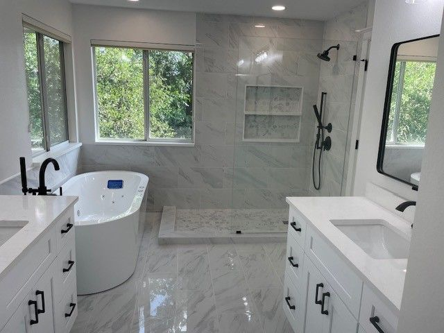 A recent project in the Zilker neighborhood serves as a prime example of the 2026 Austin bathroom ethos. The homeowners sought to convert a cramped, 1980s-era master bath into a “wet room” sanctuary. The project involved removing a bulky garden tub and replacing it with a freestanding soaking tub nestled within a large, glass-enclosed shower area.