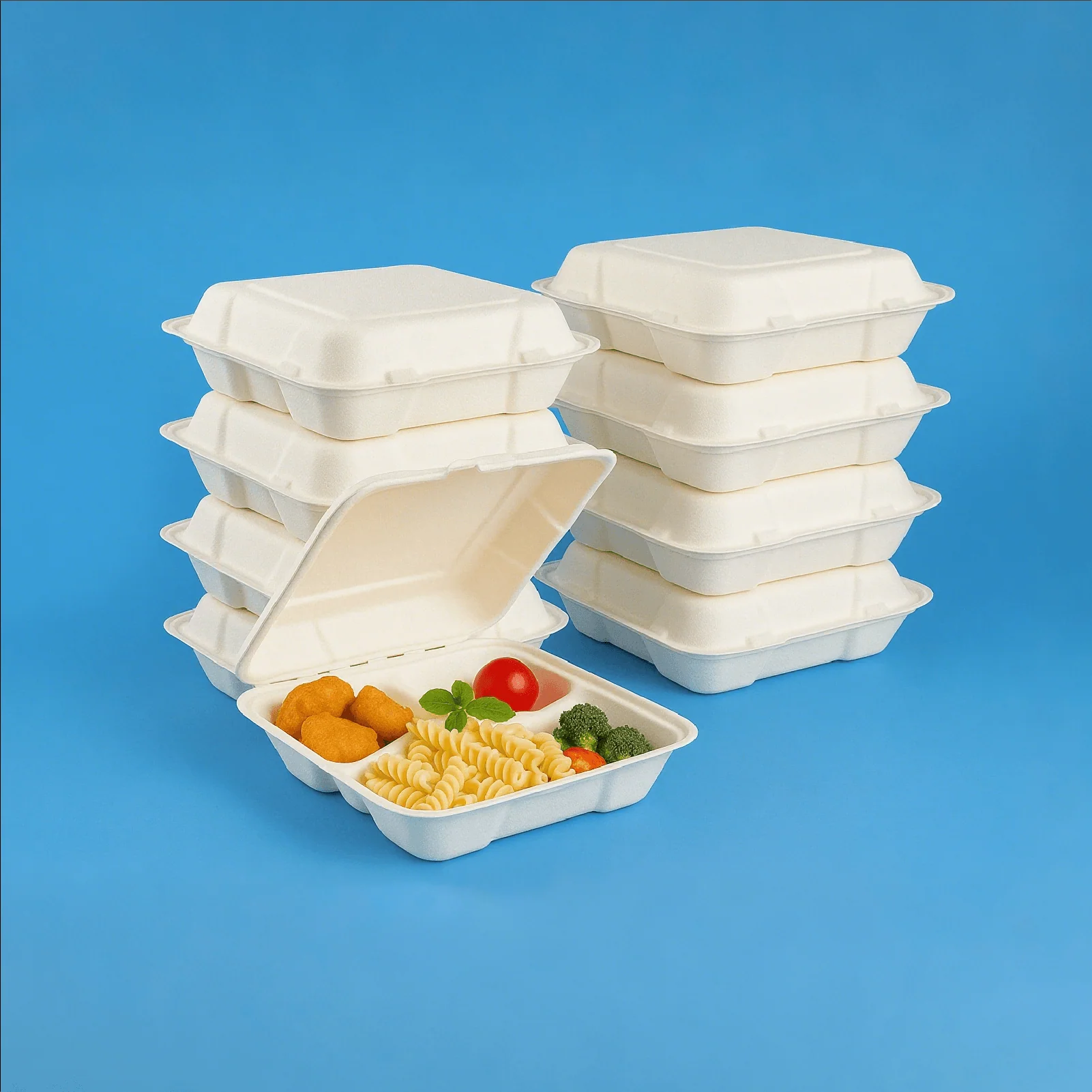 Bagasse is the fibrous residue left behind after sugarcane stalks are crushed to extract their juice. Rather than being burned or discarded, this agricultural byproduct has found new purpose as raw material for sustainable food packaging. The manufacturing process begins with cleaning and pulping the bagasse fibers, which are then mixed with water to create a slurry. This mixture is molded under heat and pressure into various container shapes, then dried to achieve the rigid structure caterers depend on. The result is a sturdy, heat-resistant product that requires no additional plastic coatings or chemical treatments.