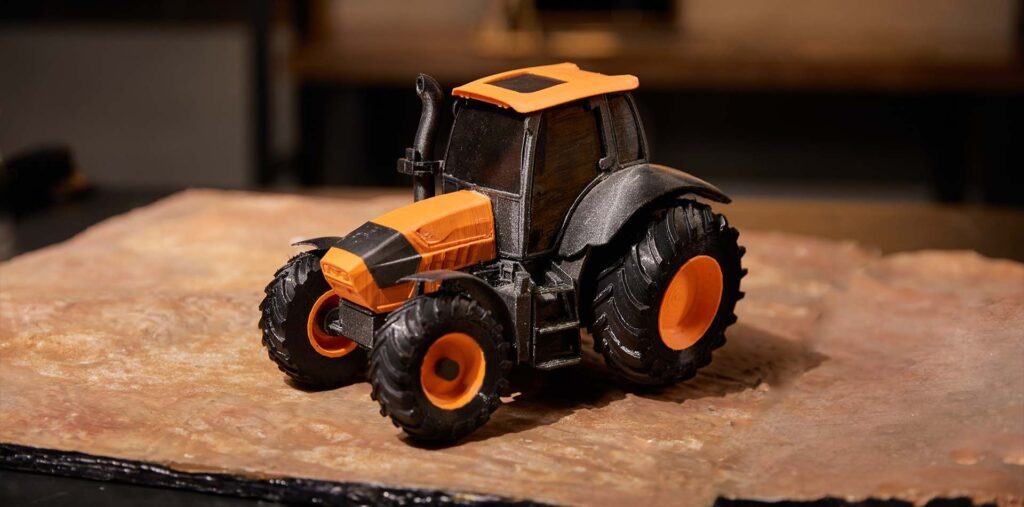 On a standard machine, you would have to print 20 separate parts and assemble them with screws. On a multi-material machine, you print the entire assembly in place. The flexible material acts as a tendon, allowing the prop to move naturally right off the build plate.