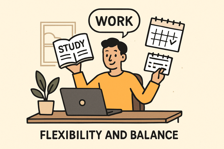 - Flexibility: Study around your work and personal life with online scheduling.